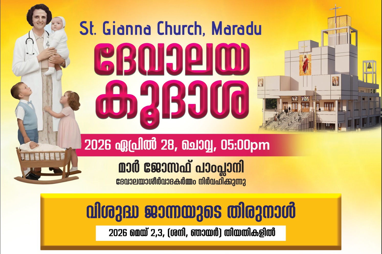 St Gianna Church Maradu, blessed on 27th January 2007 by Mar Thomas Chakiath, then Auxiliary Bishop of Ernakulam is the first church in Asia dedicated to St. Gianna Beretta Molla.